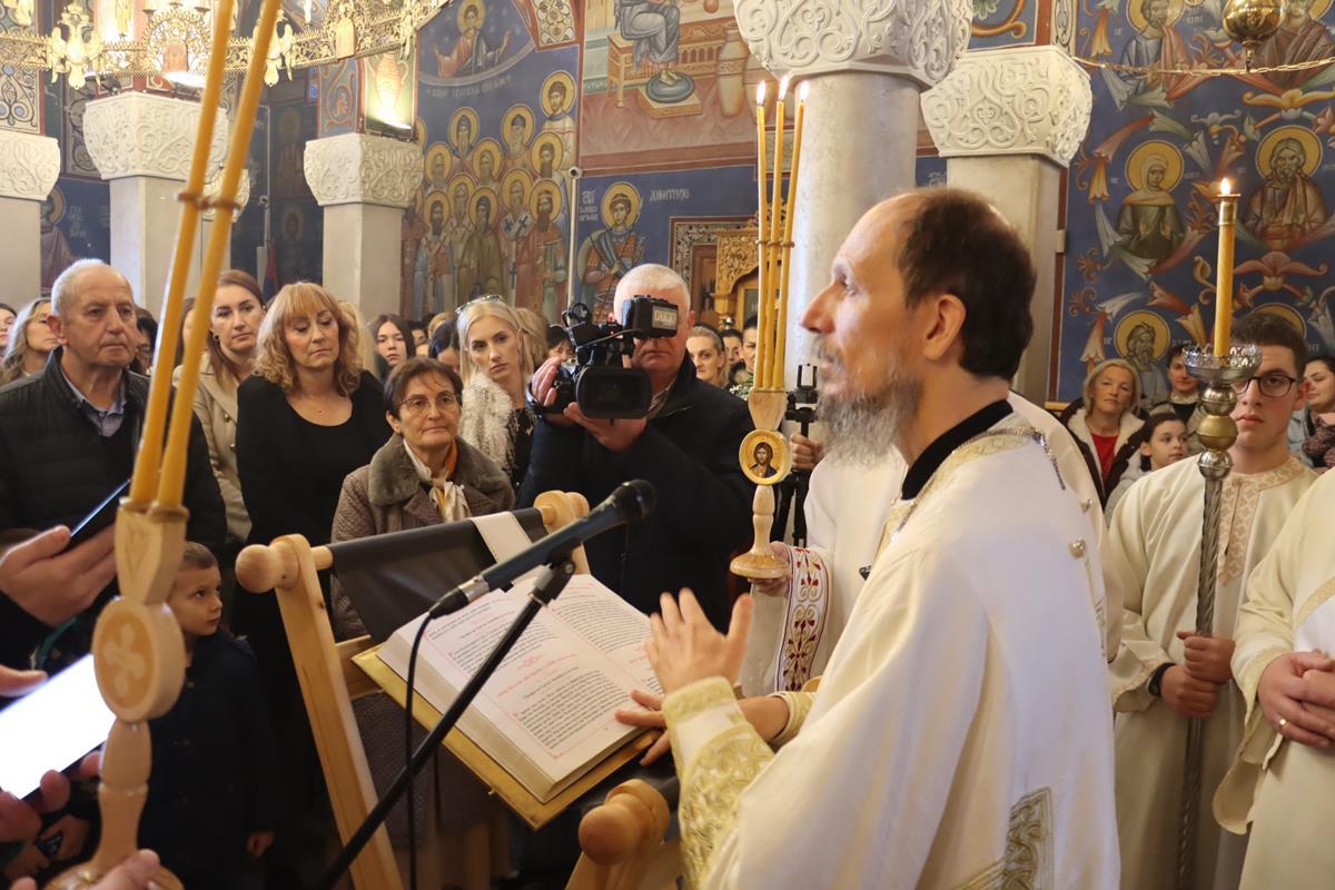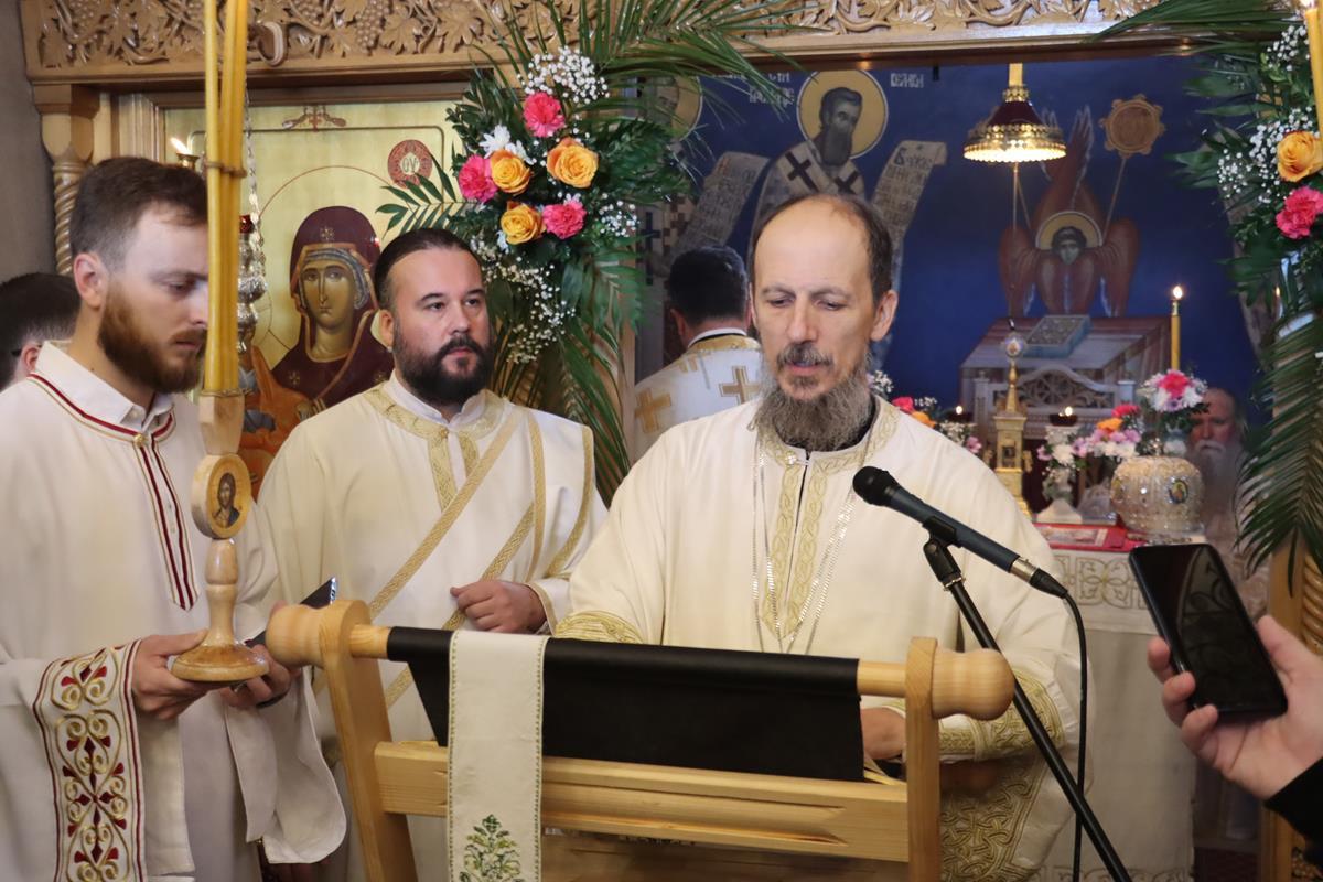 Бесједећи по Јеванђељу, Владика Димитрије подсјетио је како је пјесник Јован Дучић, пред старост, пожелио да свој прах принесе Творцу, у цркви Божијој на Црквини, коју је тад само замислио. Кроз тај прах, тијело његово и душу Творац је много шта по својим чудесним и промислитељним дјелима сатворио и пјесник је учествовао у Божијем дару стварања. Говорећи о прочитаној јеванђељској причи, Владика је појаснио да безумни богаташ, кад му њива чудесно прероди, одлучивши да сагради велике житнице чини двоструко зло. Прво је наудио својој души будући скучен и услова срца, а затим је наудио и другима наводећи их да завиде на толиком богатству. Појашњавајући Божије обраћање богаташу, Владика Димитрије је појаснио да је Спаситељ јављајући се у свијету показао како људи учествују у Божијим даровима. У Христу Господу хришћани имају оваплоћену вољу Божију. Човјеково богаћење Богом иде преко вјере у Њега живога Бога, а затим борбе за срце човјеково да се оно не привеже ни за шта на овом свијету, него да однос са живим Богом буде као однос једних према другима када човјек некога много воли.