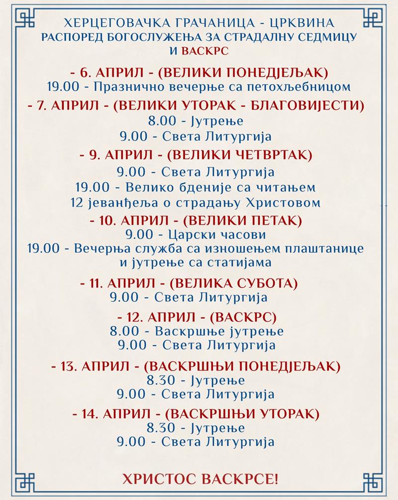 13. АПРИЛ – ВАСКРШЊИ ПОНЕДЈЕЉАК